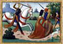 " ...Et la première flamme vint, et avec elle le cri atroce qui allait faire écho, dans tous les coeurs chrétiens, au cri de la vierge lorsqu'elle vit monter la croix du Christ sur le ciel livide. De ce qui avait été la forêt de Brocéliande jusqu'aux cimetières de Terre sainte, la vieille chevalerie morte se leva dans ses tombes. Dans le silence de la nuit funèbre, écartant les mains jointes de leurs gisants de pierre, les preux de la Table ronde et les compagnons de Saint Louis, les premiers combattants tombés à la prise de Jérusalem et les derniers fidèles du petit roi lépreux, toute l'assemblée des rêves de la chrétienté regardait, de ses yeux d'ombre, monter les flammes qui allaient traverser les siècles, vers cette forme enfin immobile, qui devenait le corps brûlé de la chevalerie..."