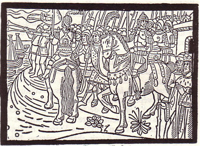 'an mil quatre cens trente-un (85) passa la mer et descendit en France le roy d'Angleterre Henri VI du nom, filz du feu roy d'Angleterre, aussi nommé Henry, dont dessus est faicte men-cion, et de Katherine, fille de France, lequel estoit en l'aage de douze ans ou environ. Et s'en vint tout droit à Paris acompaignié du cardinal de Vicestre, du duc de Betheford, son oncle, du conte de Varuich et de plussieurs autres seigneurs d'Angleterre. Auquel lieu de Paris il fut reçeu moult grandement et honnourablement en cryant Noël ! pour sa venue et en faisant plussieurs mistères et jeux de personnages en plussieurs carrefours de ladite ville de Saint-Denis. Au hault de la bastille de la porte Saint-Denis, par laquelle il entra, fut fait ung grant escu armoyé des armes dudit roy, et plussieurs autres paintures et histoires en louant sa venue. Et par l'évesque de Thérouenne, soy-disant chancellier de France pour ledit roy Henry, l'évesque de Paris, les présidens, les conseilliez et autres tant de parlement, des comptes, des généraux, des requestes et autres, les prévosts de Paris, des marchans, eschevins et autres de ladite ville de Paris, furent à le renconter aux champs, en lui faisant révérence comme à leur souverain seigneur. Et se vint logier ledit roy d'Angleterre au pallaiz.