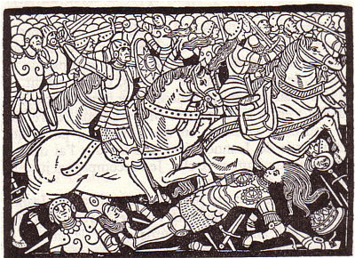 Et durant que ladite bataille se faisoit, fut envoyé quérir par ledit Barbazan ung escuier nommé Henry de Bourges, cappitaine du chastel et ville de Sarré (82), pour venir à leurs secours. Et combien que ledit cappitaine fust promptement venu de courir les pays de ses ennemys, touteffoiz, comme vaillans, preux et hardi, changèrent lui et ses gens nouveaulx chevaulx, et y avoit en sa compaignie quinze cens (83) combatans ou environ, bien en point. Desquels estoit le principal le bourg (84) de Vignolles, frère de La Hire, et vindrent audit lieu où la bataille estoit, à une lieue près dudit Sarré. Et tindrent leur chemin tout au long des vignes tout le plus couvert qu'ilz peurent, et sans marchander se boutèrent dedans icelle bataille, et tellement s'i gouvernèrent que lesdits Angloiz et Bourguongnons furent desconfilz, et n'en eschappa guaires que tous ne fussent mors et prins. Et disoit on qu'ils estoient bien de cinq à six cens prisonniers, qui furent menez dedans ladite ville de Challons. Et furent enterrez les mors par les gens des villages d'environ. Et si y mourut des François quatre vingts ou environ. Icelle desconfiture relactée par Pierre de Bruyères, serviteur dudit bourg de Vignolles, lequel estoit présent à ladite journée.