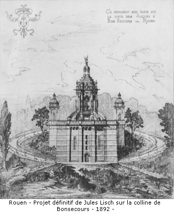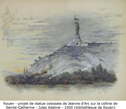 Le projet d'implantation d'un monument colossal sur les hauteurs dominant Rouen, va se développer, sans succès malheureusement, jusqu'en 1909, notamment par le projet d'une statue de 16 mètres sur un socle de 11,5 mètres construite sur le fort Sainte-Catherine.