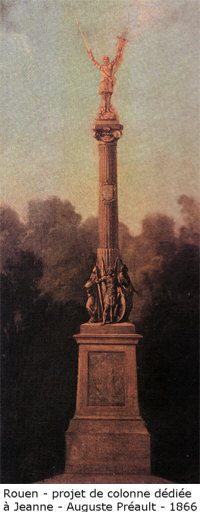 Mais tout cela ne satisfait pas encore complètement les Rouennais. Jules Michelet sera le déclencheur d'une véritable propostion d'hommage à Jeanne d'Arc. Son beau-fils A. Dumesnil propose la création d'une cité au nord de Rouen avec des noms de rue évoquant la carrière de la Pucelle (Domrémy, Reims etc...) et au milieu de laquelle s'élèverait une colonne de 20 mètres de haut sur le modèle de celle du Châtelet à Paris, un projet d'Auguste Préault. Un essai de financement franco-anglais sera un échec et ce projet finira par être abandonné vers 1865.