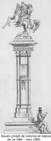 Celui-ci proposera sa statue dans un nouveau projet en 1876 à la ville de Rouen. Juchée sur une colonne monumentale, le monument devait prendre place sur l'ancien boulevard Bouvreuil (du nom du chateau de Rouen) aujourd'hui appelé Boulevard Jeanne d'Arc mais un changement de conseil municipal à Rouen en 1879 sonne la fin du projet. Sa statue lui est retournée sans un mot d'explication.