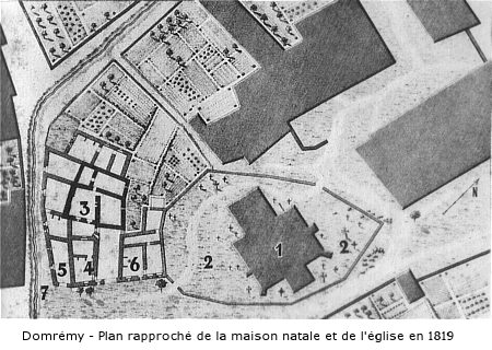 On voit près de "7" le ruisseau qui séparait Domrémy en deux parties.