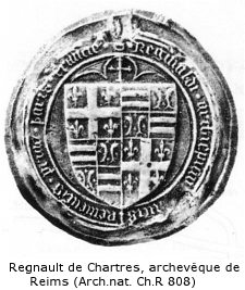22 Regnault de Chartres, né vers 1380, chanoine, puis doyen de Saint-Pierre de Beauvais en 1408, et archevêque de Reims en 1414 : c'est en cette qualité qu'il se rendit l'année suivante au concile de Constance. Il fut une première fois chancelier de France le 28 mars 1424 ; mais il remit les sceaux au bout de quelques mois pour aller, comme orateur d'obédience, auprès de Martin V. II redevint chancelier le 2 novembre 1428. Nous verrons quelle sorte d'influence il exerça sur cette période de notre histoire. Voir sa vie comme archevêque et comme chancelier dans le Gallia christiana et dans Duchesne, Hist. des chanceliers de France, et sa notice plus abrégée dans un article de la Biographie générale de MM. Didot, signé, comme beaucoup d'autes excellents articles sur les hommes de ce temps, par Vallet de Viriville.