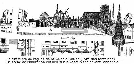 le cimetière de l'abbaye de Saint-Ouen. Sur l'un siégeait l'évêque, ayant avec lui le cardinal de